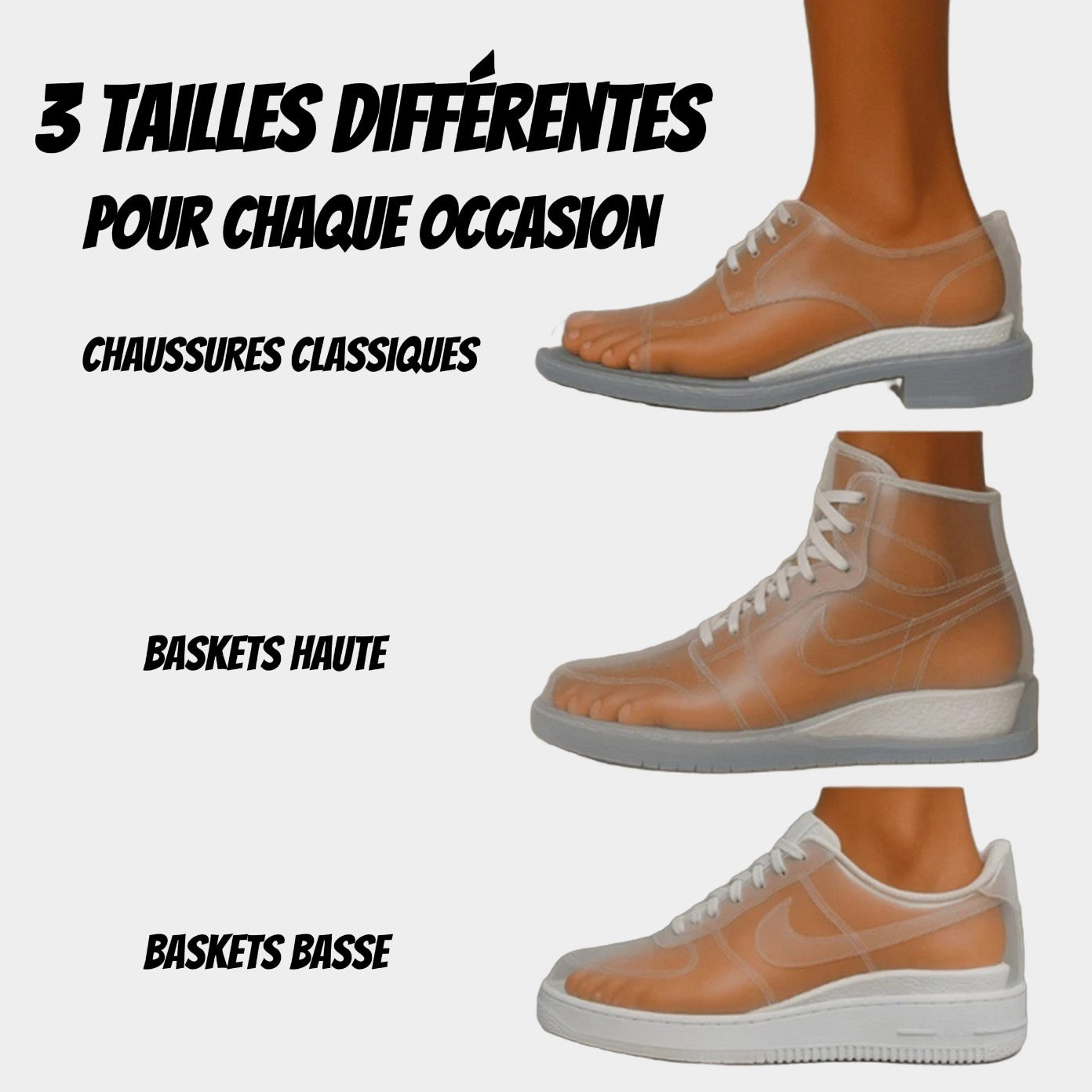 La forme orthopédique révolutionnaire de nos semelles offre un confort maximal sans compromettre la hauteur. Vous gagnez ainsi en taille tout en soutenant vos articulations.